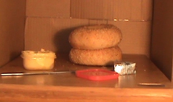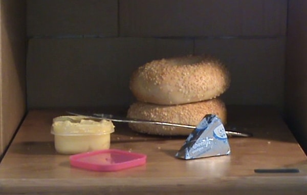 Notice how the shadows add depth instead of compete with the objects for attention. Look at the lovely change in contrast from left to right across the bagels. The cheese has been lifted to make to stand out better and so that it casts a better shadow.
