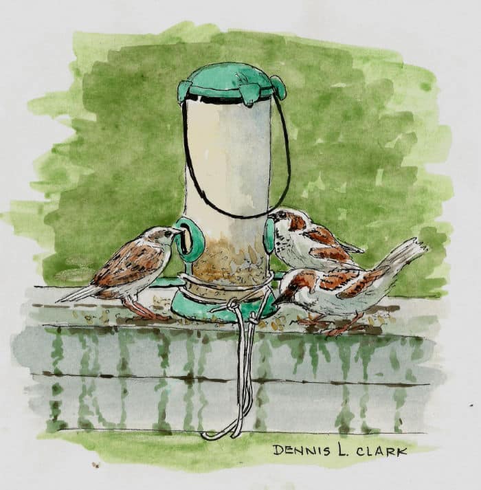 This sketch of the sparrows at the feeder was completed in ¾ of an hour.