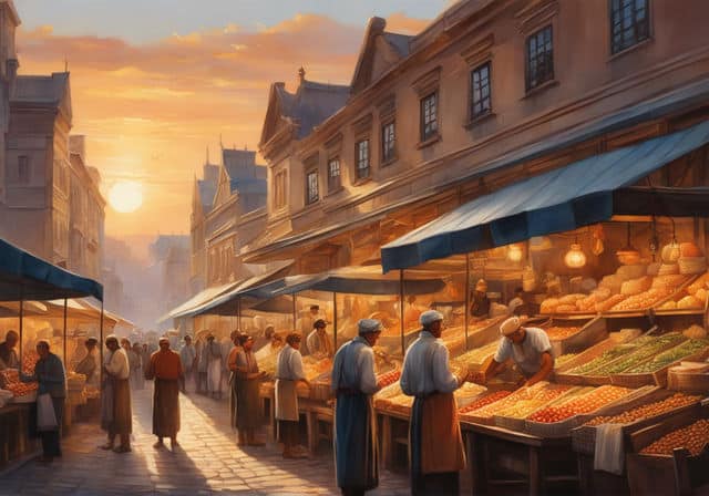 Harmonizing Through Color: Imagine a painting of a bustling city market. There are people, stalls, products, and more. Using a dominant color scheme, like warm tones of reds, oranges, and yellows, can make all these diverse elements feel unified, as if bathed in the golden light of sunset.