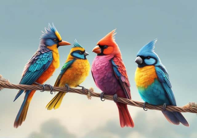 Birds in Flight: A scene with birds, where their wings are captured mid-flap and their bodies are angled, suggests the act of flying.